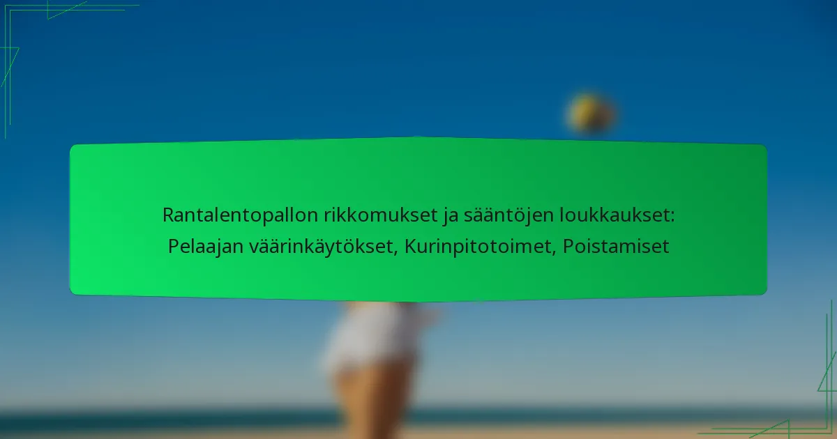 Rantalentopallon rikkomukset ja sääntöjen rikkomiset sisältävät pääasiassa verkon rikkomukset, jalkavirheet ja syöttövirheet. Näiden rikkomusten ymmärtäminen on ratkaisevan tärkeää reilun pelin ylläpitämiseksi ja sujuvan pelin varmistamiseksi. Jokaisella rikkomustyypillä on omat sääntönsä ja seurauksensa, joista pelaajien on oltava tietoisia välttääkseen rangaistuksia.