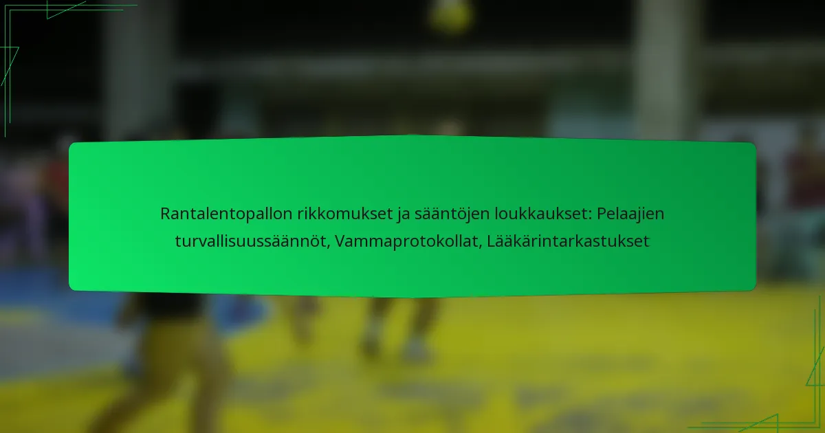 Rantalentopallon pelaajien turvallisuuden ylläpitäminen on ensisijaisen tärkeää, sillä yleiset rikkomukset ja sääntöjen vastaisuudet voivat häiritä reilua peliä ja johtaa vakaviin vammoihin. Vammojen käsittelyprotokollien noudattaminen on välttämätöntä nopean ja tehokkaan lääketieteellisen vasteen varmistamiseksi otteluiden aikana, suojaten urheilijoiden hyvinvointia ja säilyttäen pelin eheyden. Näiden sääntöjen ymmärtäminen auttaa pelaajia ja tuomareita navigoimaan lajin monimutkaisuudessa samalla, kun terveys ja turvallisuus ovat etusijalla.