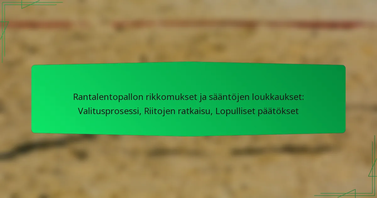 Yleiset rikkomukset ja sääntöjen vastaisuudet rantalentopallossa sisältävät toimet, jotka häiritsevät reilua peliä tai vaarantavat pelaajien turvallisuuden. Nämä rikkomukset voivat johtaa rangaistuksiin, jotka vaikuttavat pelin lopputulokseen ja pelaajien hyvinvointiin.