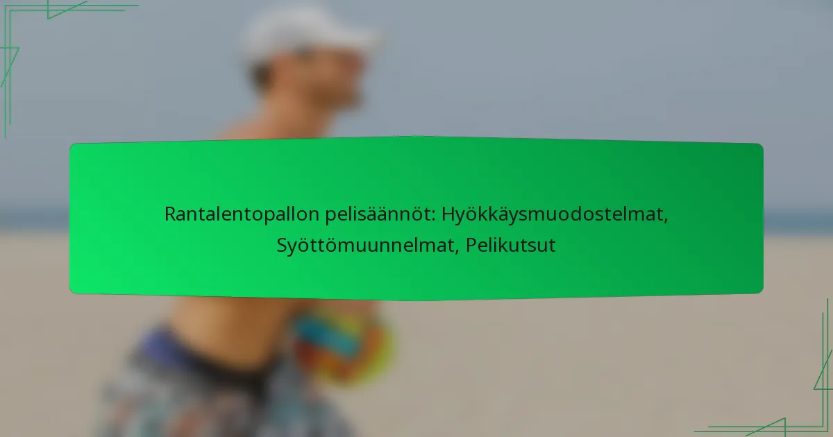 Rantalentopallon pelimuotoa muokkaavat tietyt säännöt, jotka kattavat pelaajakoostumuksen, pisteytyksen ja kentän mitat, joten on olennaista, että pelaajat ja tuomarit ymmärtävät nämä säännöt reilun pelin varmistamiseksi. Hyökkäysmuodostelmilla on keskeinen rooli pelaajien roolien ja sijoittumisen määrittämisessä, mikä mahdollistaa joukkueiden hyökkäysstrategioiden parantamisen. Lisäksi erilaiset syöttömuunnelmat, kuten korkeat syötöt ja nopeat syötöt, ovat elintärkeitä sopeutettaessa vastustajien puolustuksiin ja optimoitaessa hyökkäyssuoritusta.