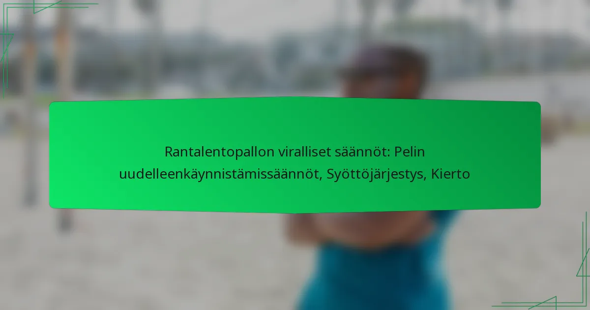 Rantavolleyin viralliset säännöt säätelevät pelin kulkua, mukaan lukien pelin uudelleenkäynnistämismenettelyt, syöttöjärjestyksen ja pelaajien kierron. Näiden sääntöjen ymmärtäminen on olennaista reilun pelin ja tehokkaan kilpailun kannalta.