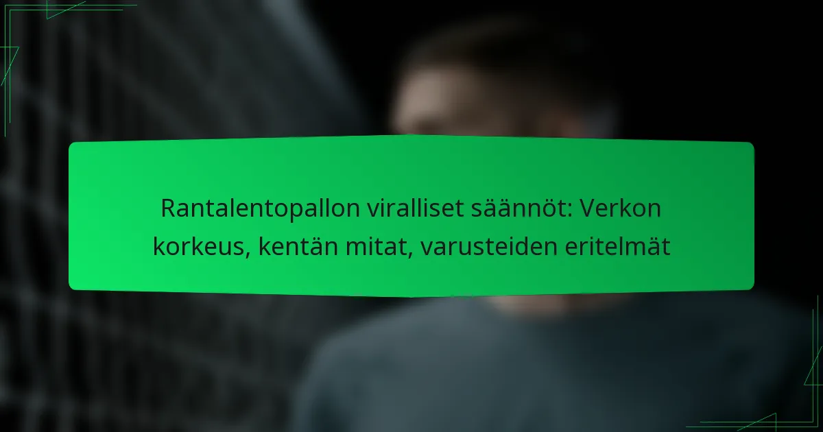 Rantalentopallo on sääntöjen alainen laji, jossa määritellään verkon korkeus, kentän mitat ja varusteiden vaatimukset. Verkon korkeus vaihtelee kilpailutason ja sukupuolen mukaan, kun taas standardikenttä on 16 metriä pitkä ja 8 metriä leveä. Näihin sääntöihin perehtyminen on olennaista pelaajille ja järjestäjille, jotta varmistetaan reilu peli ja sääntöjen noudattaminen sekä amatööri- että ammattilaisympäristöissä.